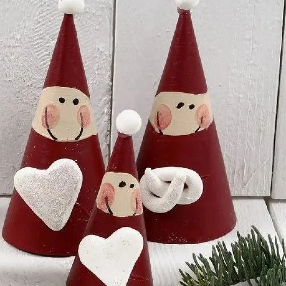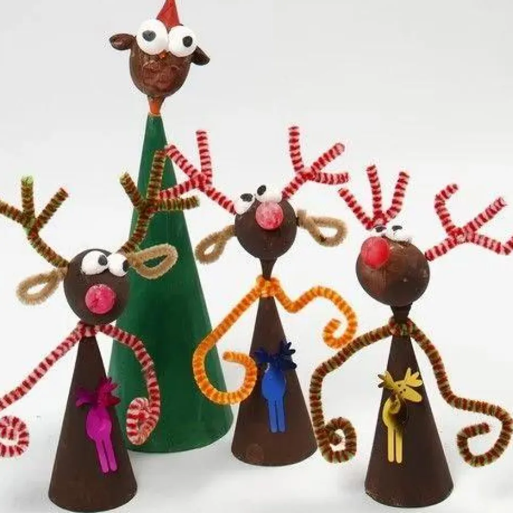 10 papmaché-kegler der kan forvandles til fx kræmmerhuse, sjove nisser eller pyntede juletræer til julebordet.