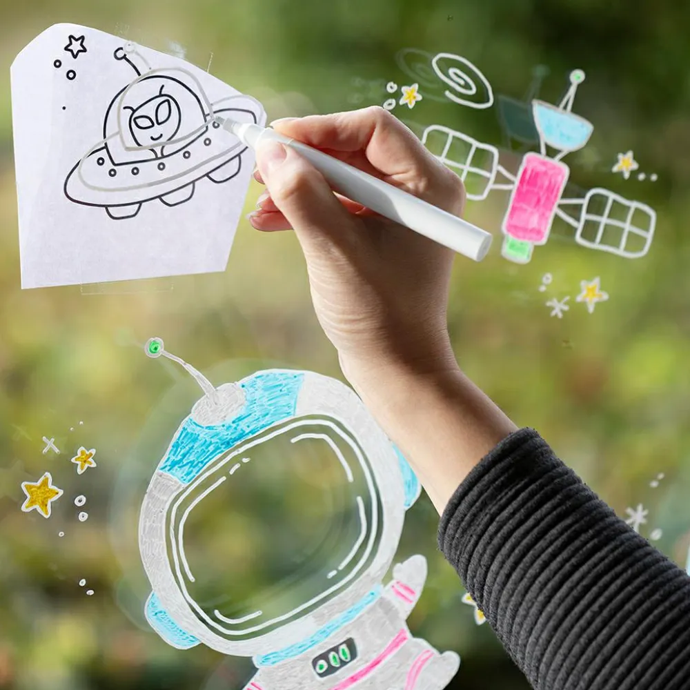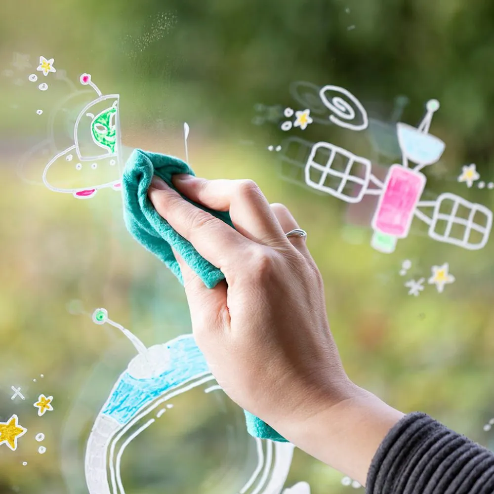 De kan nemlig tegne på helt glatte flader, og det er super nemt at fjerne dit barns kreative udfoldelser med blot en fugtig klud.