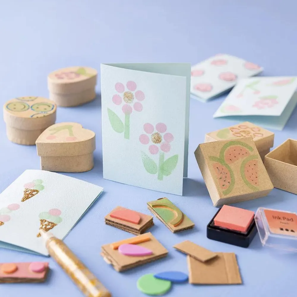 Her kan dit barn dekorere sættets æsker og kort med skumfigurer, hjemmelavede stempler, glimmerlim og tus.