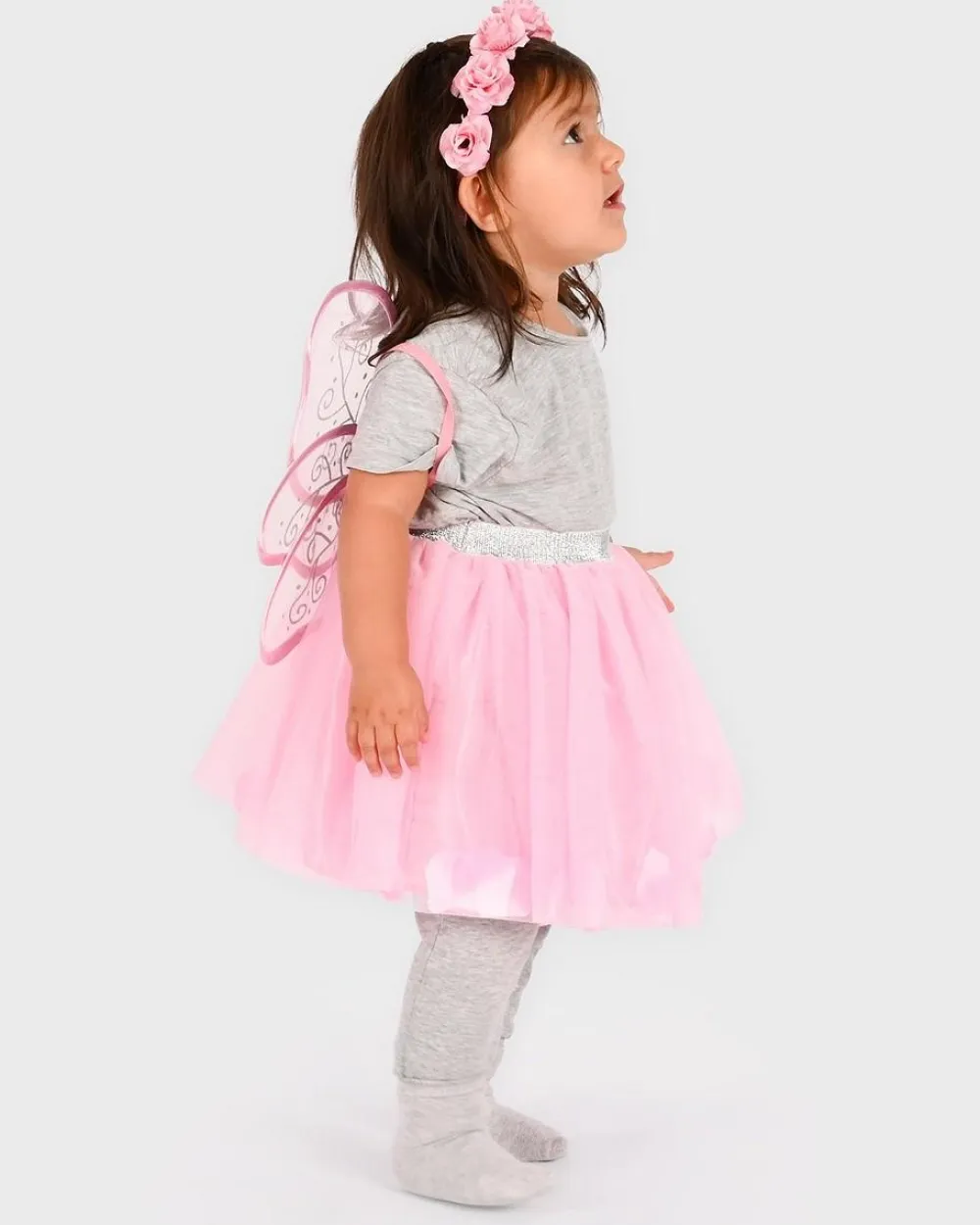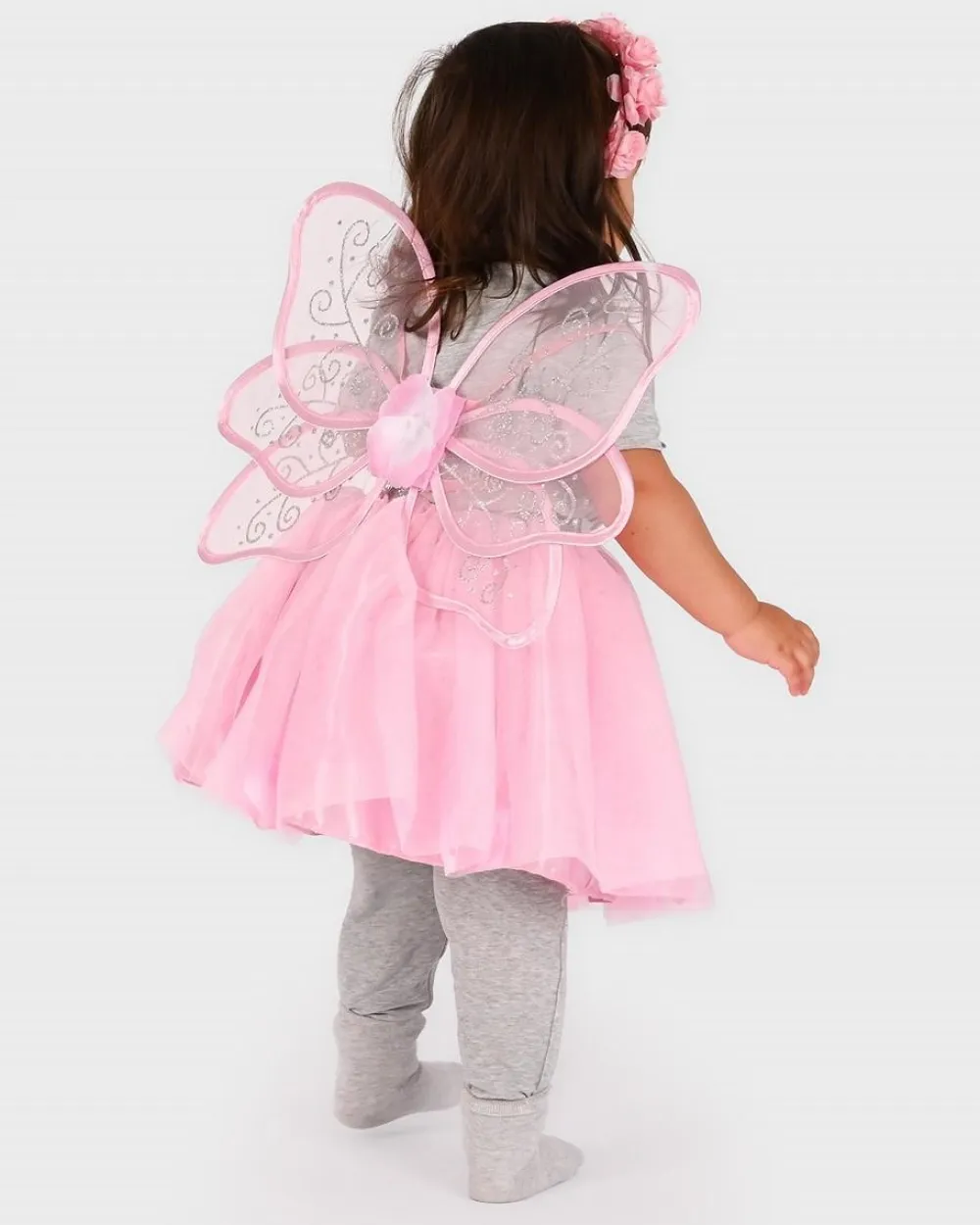 Meget pink hårbånd, skørt og vinger til den yndigste lille fe.
