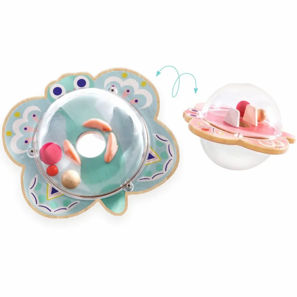 Sjovt babylegetøj fra Djeco, som dit barn kan vippe for at få kuglerne til at trille igennem hullet. Hov .. hvor forsvandt de hen? Sørme om de ikke er på den anden side, så legen kan starte forfra.