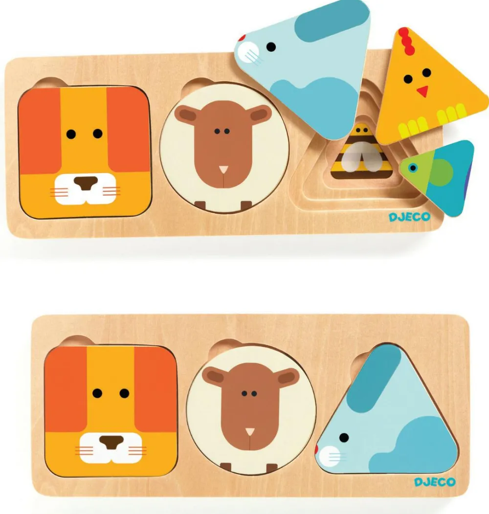 Dejligt, klassisk børnepuslespil til børn fra 18 mndr. I 3 lag, så der er i alt 9 brikker.