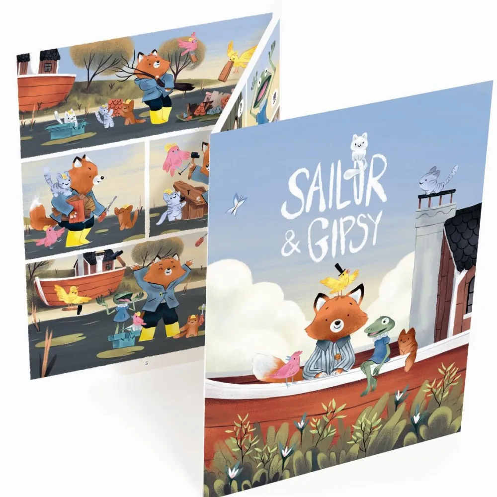 Dit barn kan selv forfatte historien om Sømanden og Gypsy ved hjælp af de mange ark med overføringsbilleder, der følger med dette fine Djeco sæt.