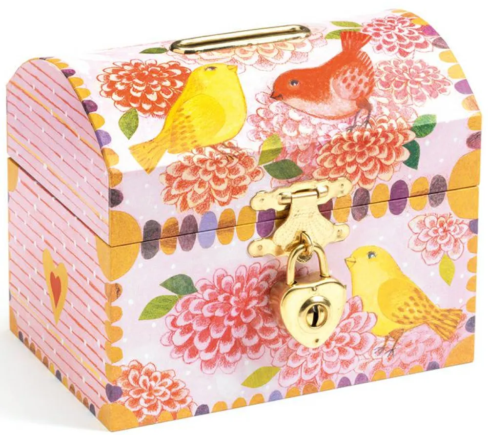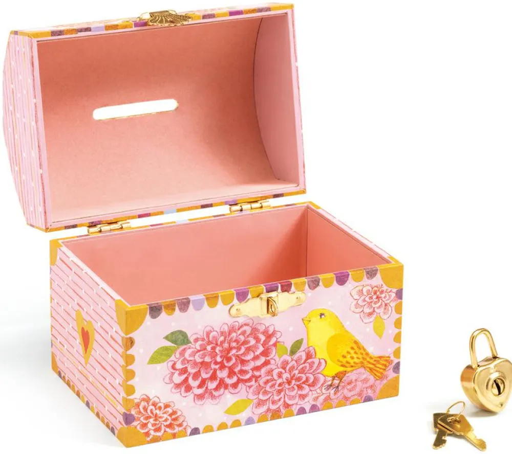 Sød kiste med slids foroven, så den kan bruges som sparebøsse. Men der kan også sagtens komme andre hemmeligheder derned.