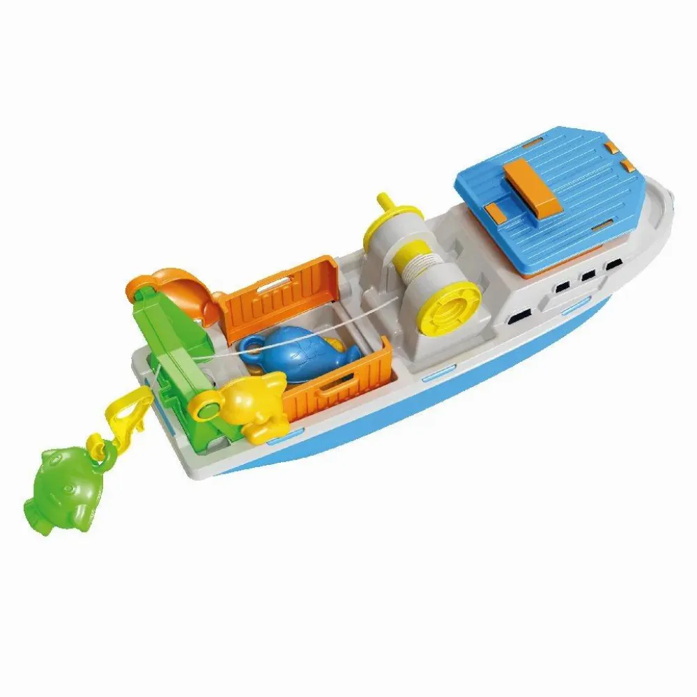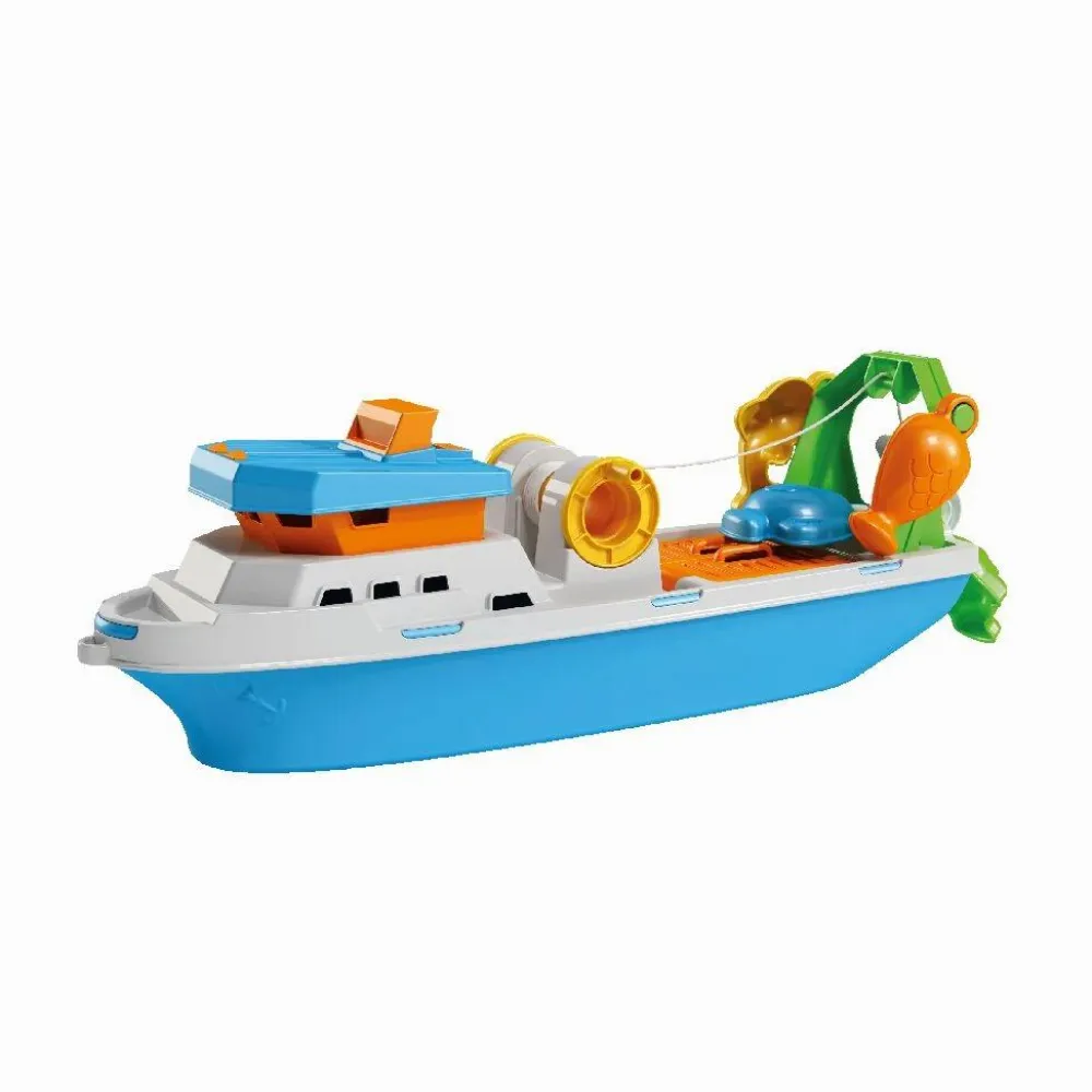 Stor fiske-slæbebåd som dit barn kan lege med på stranden, i poolen eller i badekarret.