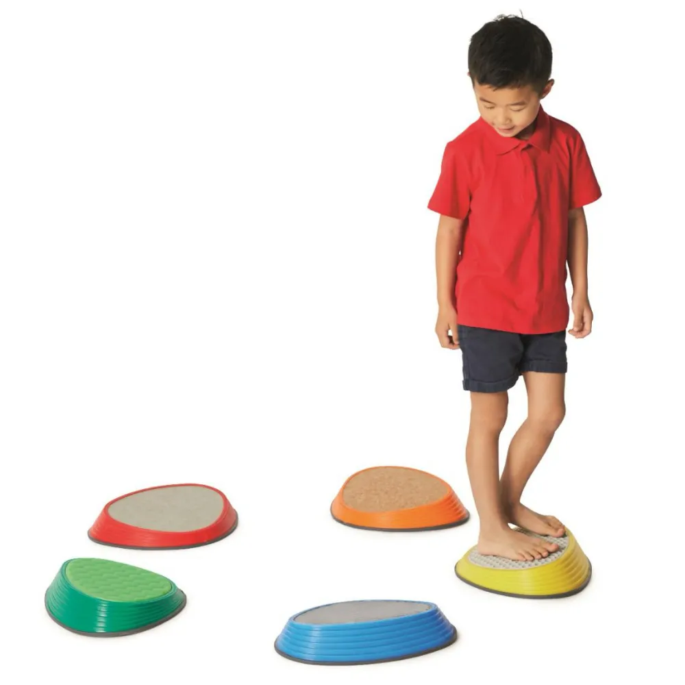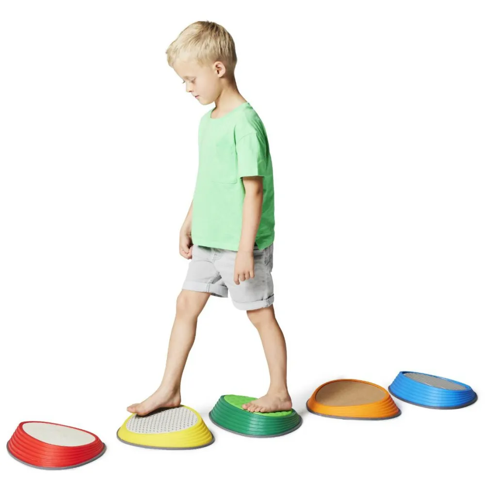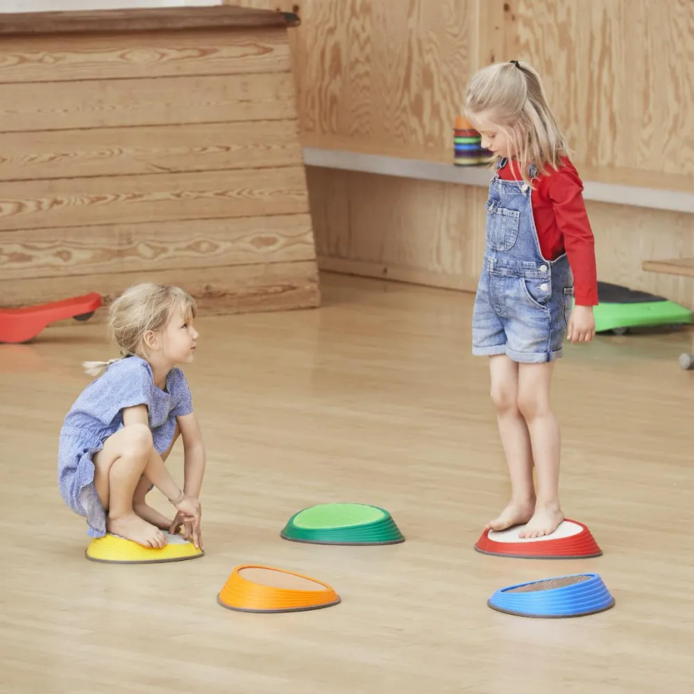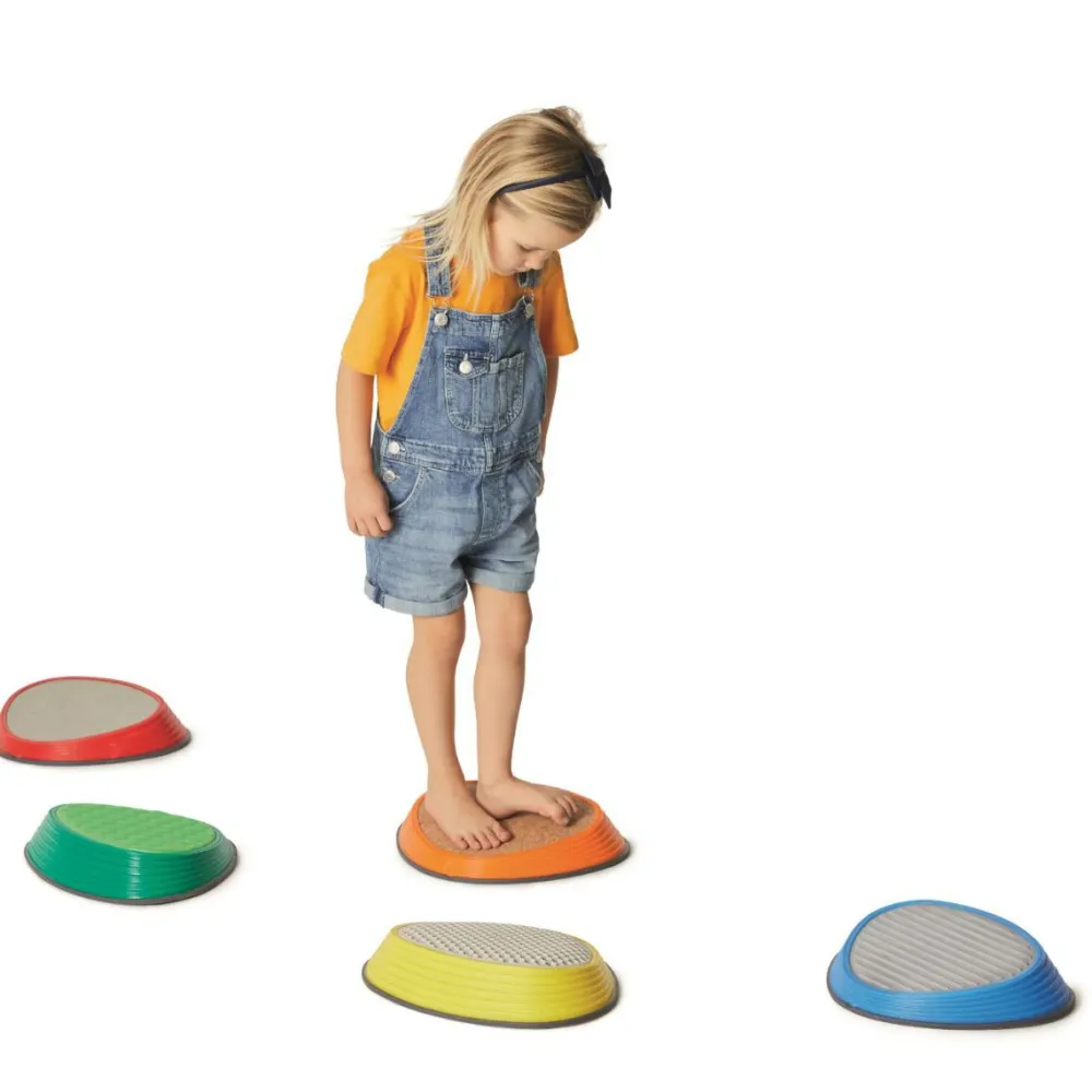 Prøv at placere stenene med passende mellemrum, og så skal børnene hoppe fra sten til sten uden at falde ned. River Stone har gummidutter i bunden, så de ikke glider og samtidig beskytter gulvet.