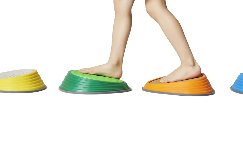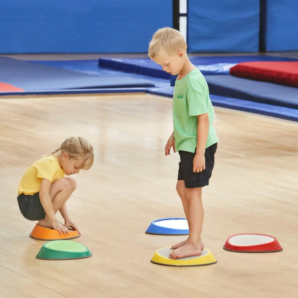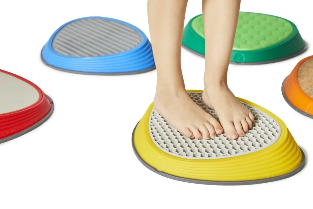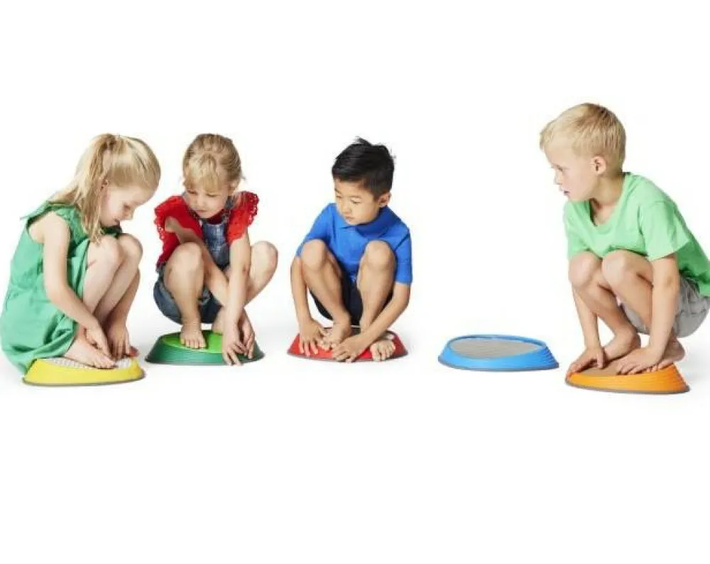 Prøv at placere stenene med passende mellemrum, og så skal børnene hoppe fra sten til sten uden at falde ned. River Stone har gummidutter i bunden, så de ikke glider og samtidig beskytter gulvet.