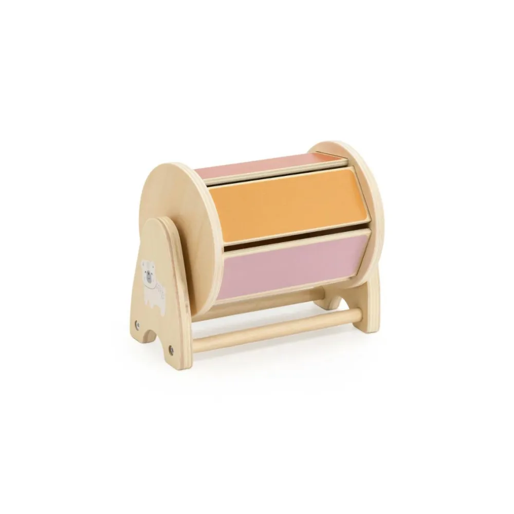 En lille kommode med en skuffe, hvor der gemmer sig en kugle. Du kan også gemme andre ting.