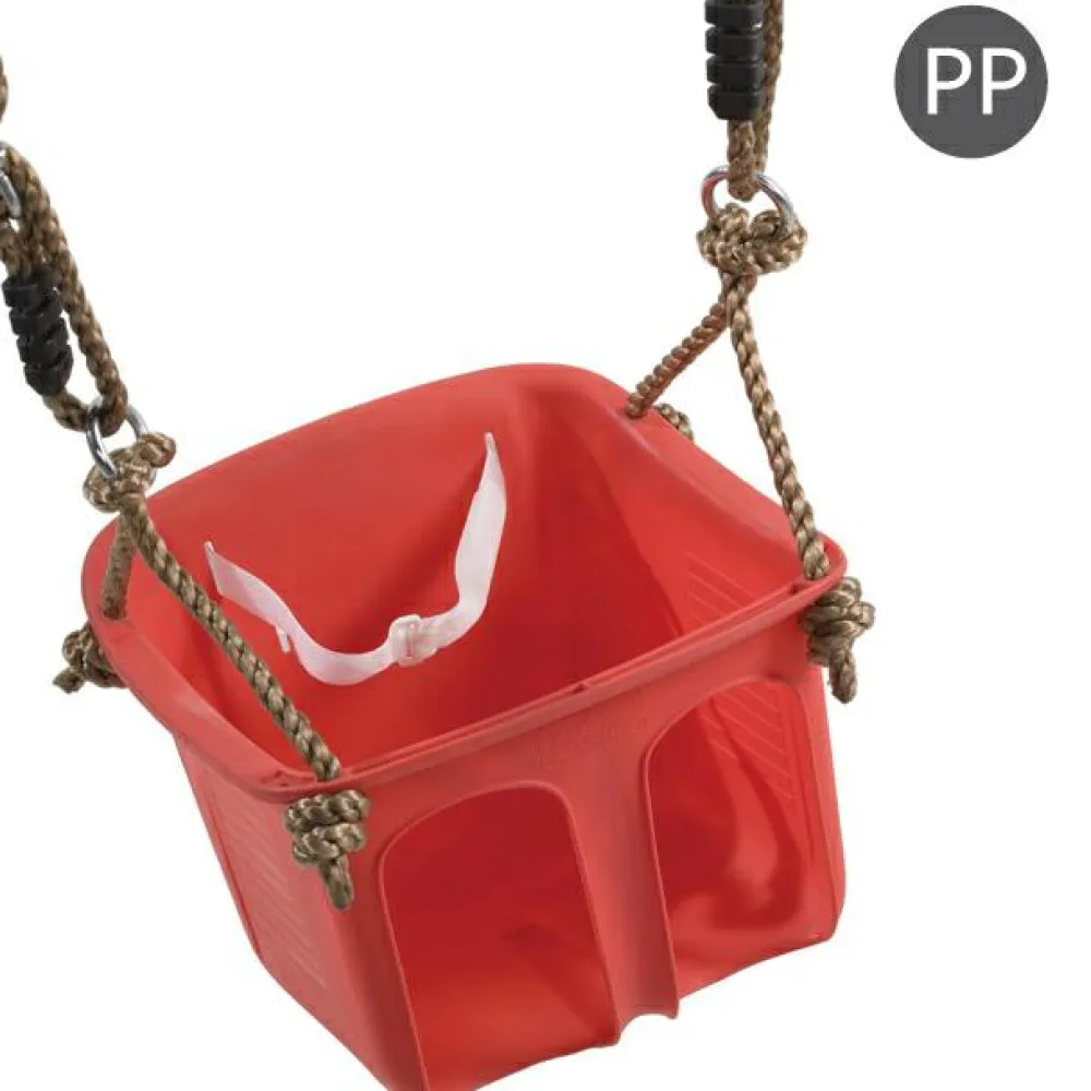 Denne klassiske babygynge kender vi vist alle. Det lille barn sidder trykt og godt, og kan spændes fast i selen. Denne gynge er rigtig god som “første gynge”, da sædet er dybt, og siderne støtter det lille barn.