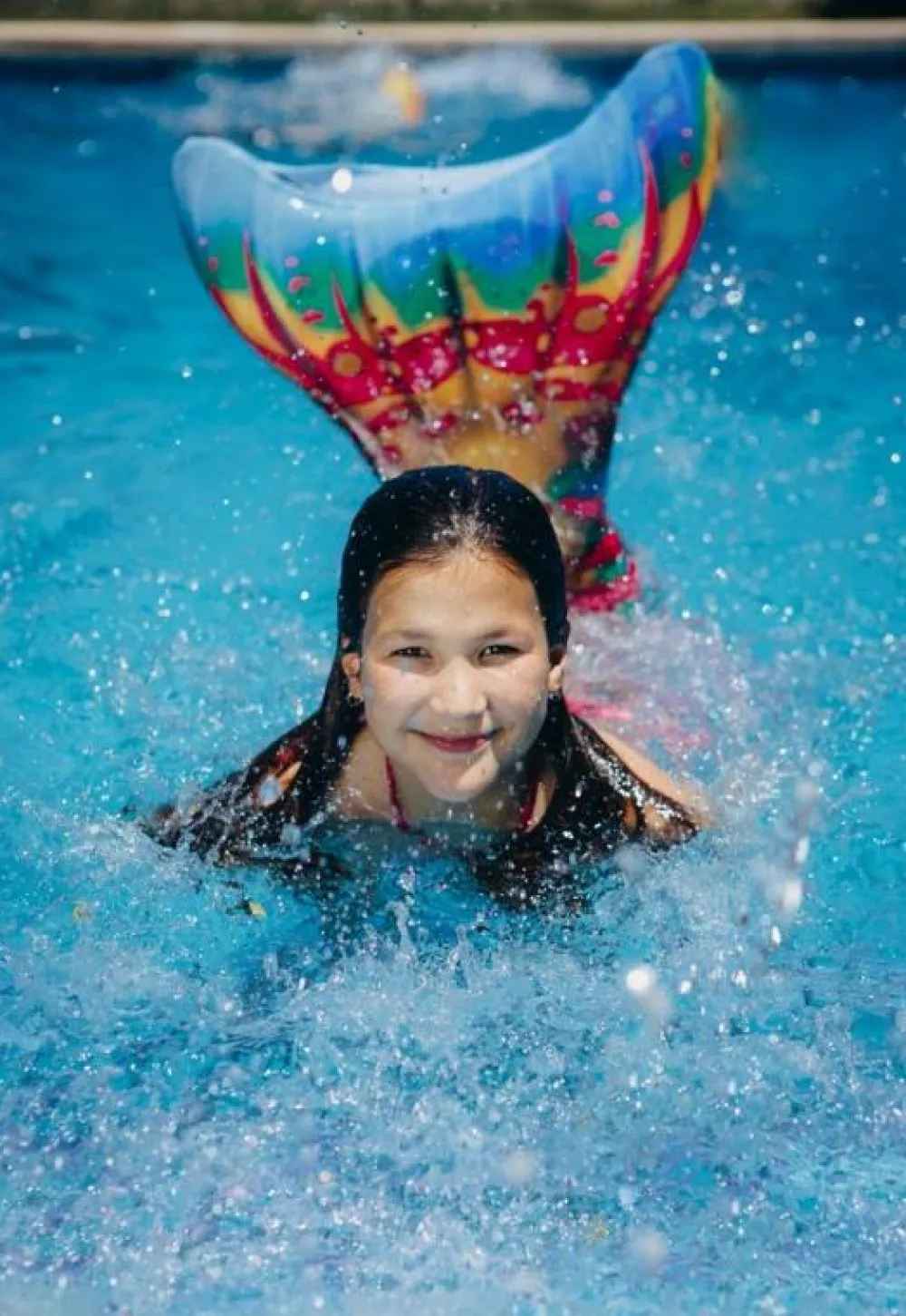 Med en havfruehale anbefaler vi, at dit barn mindst kan svømme 25 uden hjælpemidler og holde sig flydende i 30 sekunder. Du må aldrig lade dit barn være uden opsyn, når det er i vandet, med mindre dit barn er en sikker svømmer. Hvis dit barn endnu ikke kan svømme, men gerne vil have en havfruehale på, så skal du selv være i vandet, og I kan også overveje at give dit barn svømmevinger på.