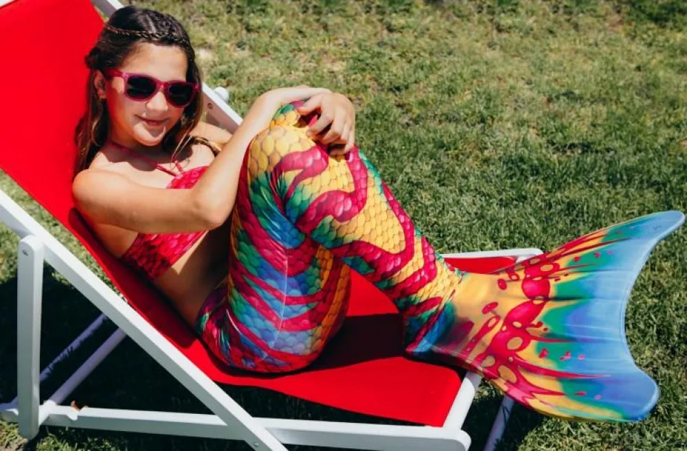 Nu kan dit barn svømme som en havfrue eller havmand og føle den fantastiske måde at glide gennem vandet, når halens stærke slag får kroppen til at strømme fremad, nedad, rundt eller op.
