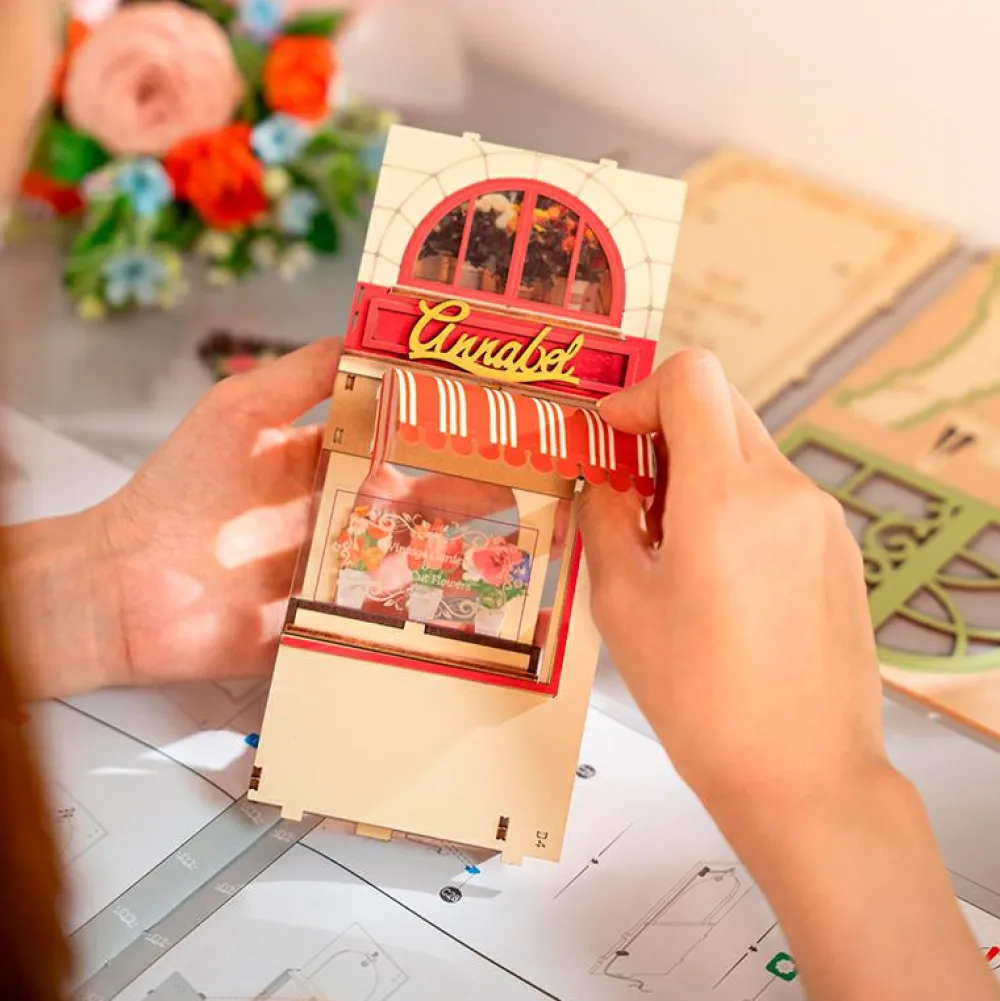 Denne fine miniature af en yndig gade med den fineste, veludstyrede blomsterbutik, kan du få timer til at gå med at bygge og derefter nyde, lige der på din egen bogreol mellem kogebøger, leksika og knaldromaner.