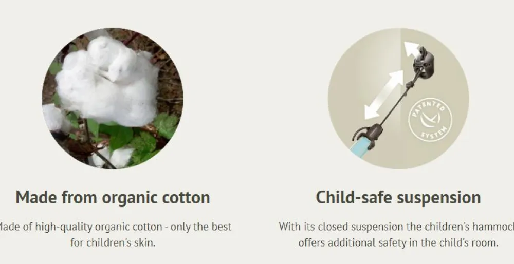 Med børnesikkert ophæng og polstrede kanter, som er bløde og behagelige og beskytter hængekøjen mod slid.