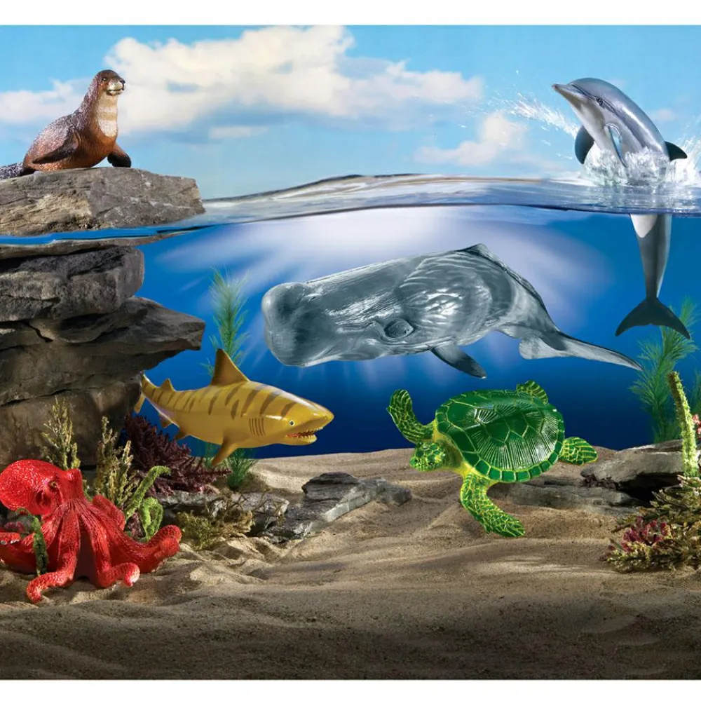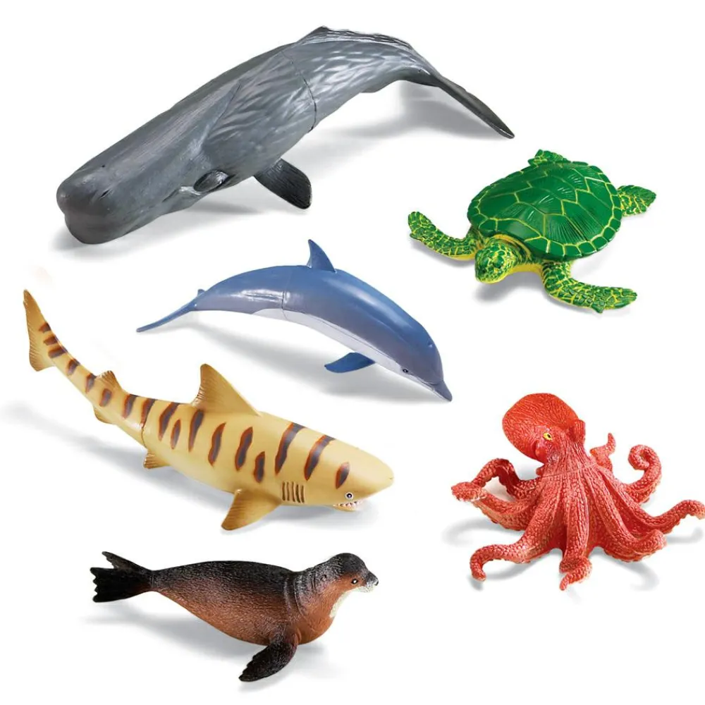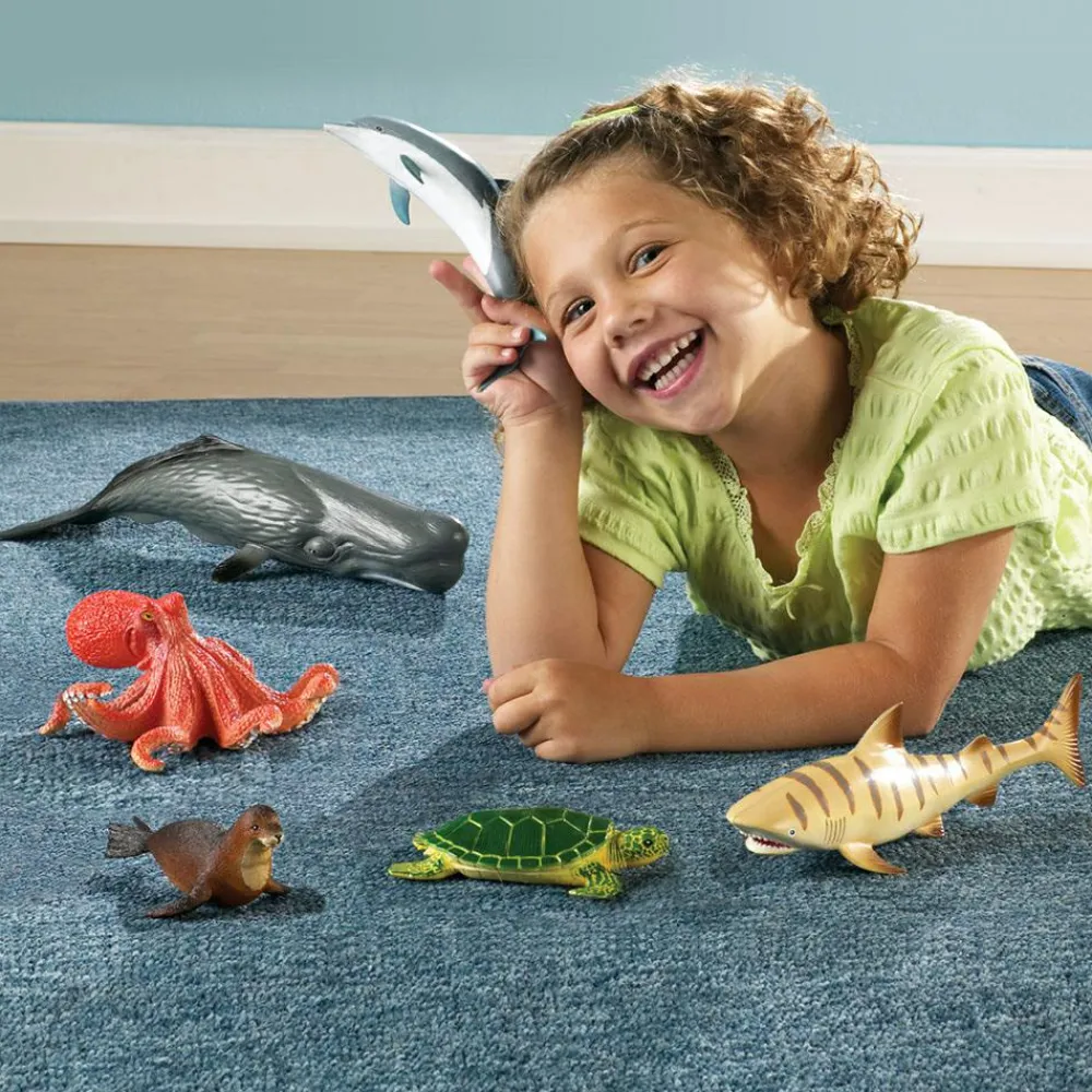 Lækkert sæt med hval, sæl, haj, søskildpadde, delfin og blæksprutte, som stimulerer dit barns nysgerrighed omkring havets dyr.