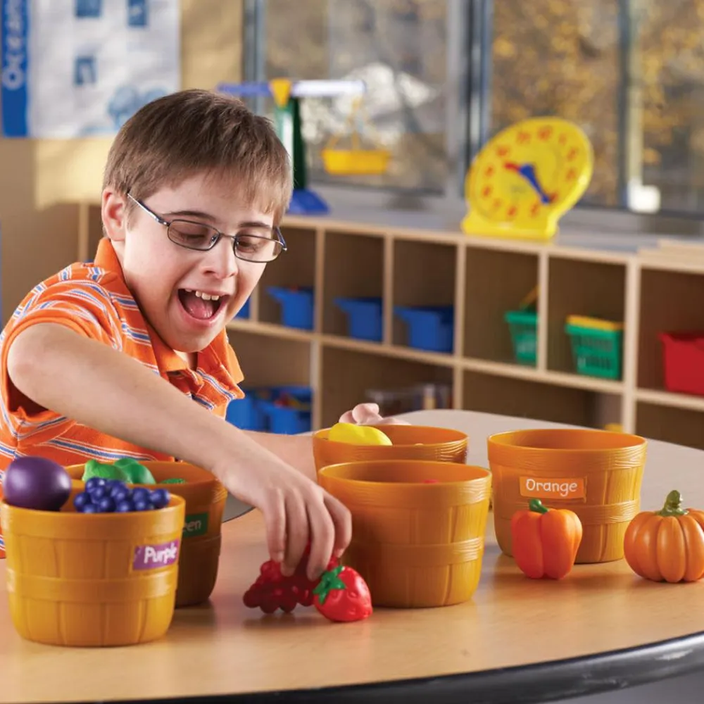Øv jer i at sortere, tale om ernæring, samle frugterne op efter navn eller farve.