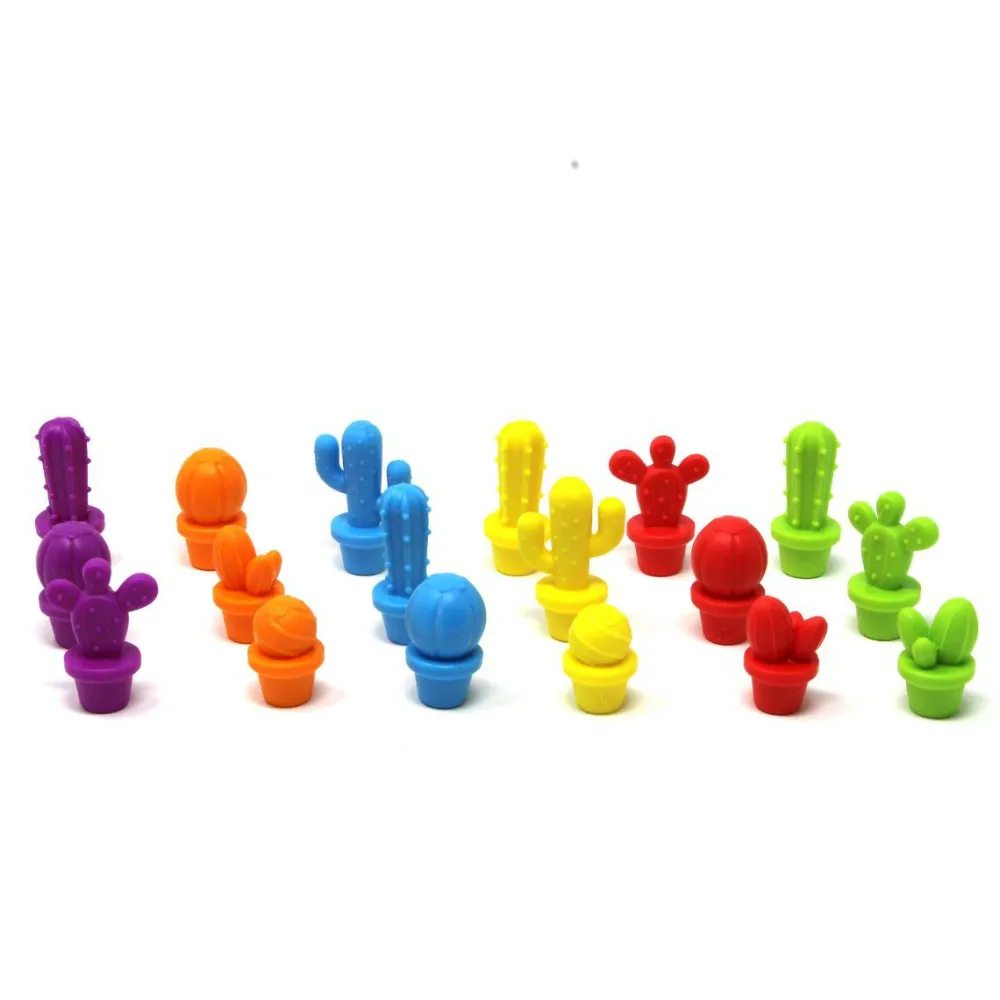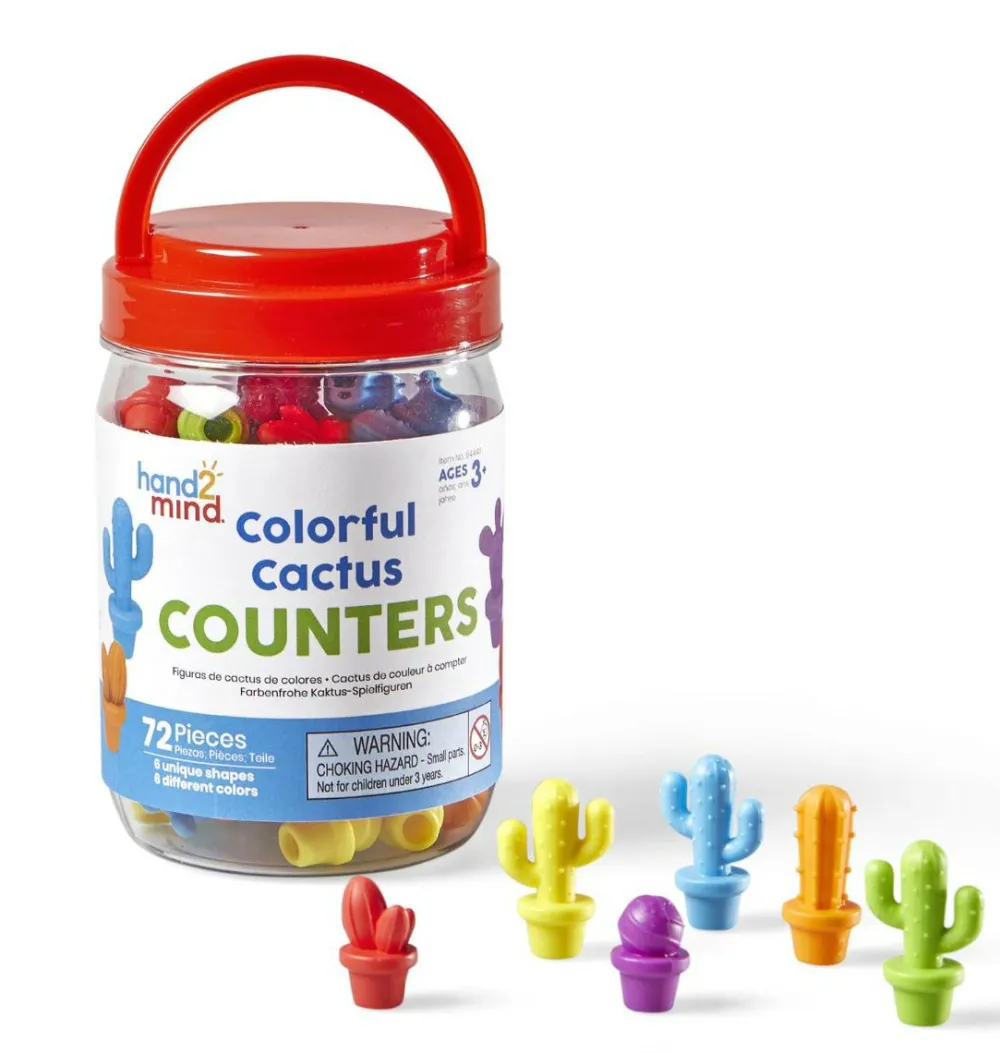 Kææmpe bøtte fyldt med kaktusser … kakti? … arj kaktusser, som dit barn kan sortere og tælle. Psst der er 72 i alt fordelt på 6 farver.