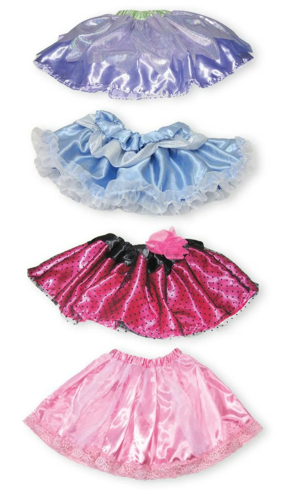 Fire nuttede dress-up nederdele i sødt design , af glitrende satin stof med mange fine detaljer .