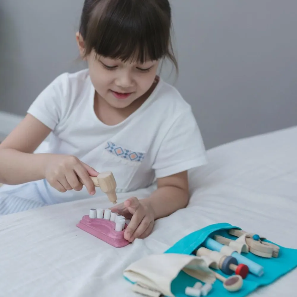 Gør klar til at give dukken, bamsen og Storesøsters bisser en grundig renovering – det er bare på med værktøjsbæltet og i gang.