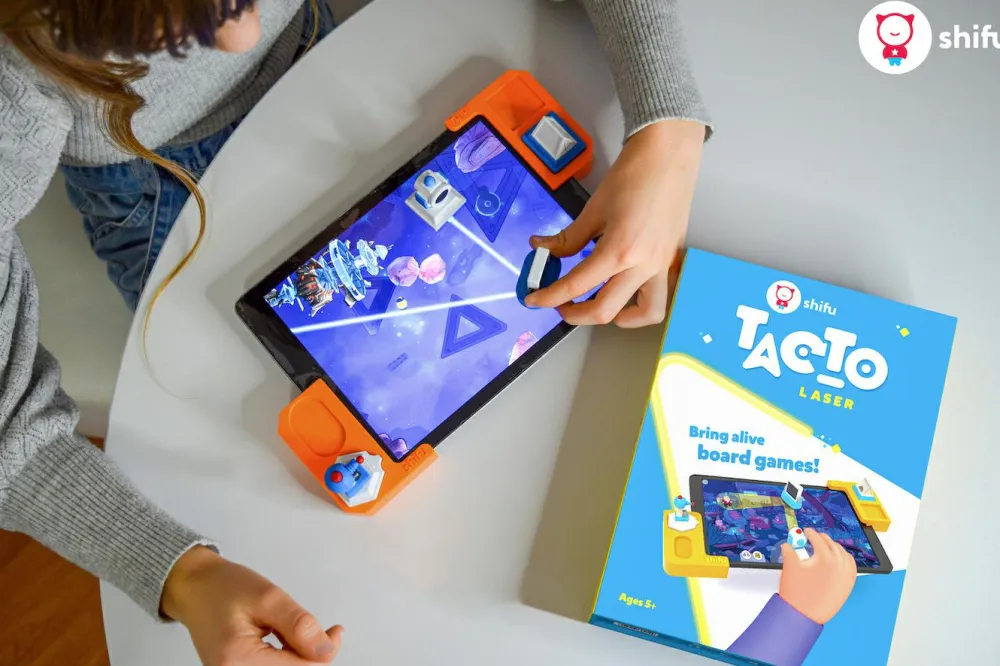 Tacto Laser er et AR-spil, hvor I kan udforske logik og lysets bevægelser ved hjælp af en historie, der drives frem af den måde, I forsøger at løse opgaverne på med de fysiske figurer. Det gælder i Laser om at få laserstråler til at oplyse og ramme de steder, historiernes hvoedpersoner har brug for at få belyst eller ramt. Laserstrålerne bøjes mellem jeres figurer, lidt ligesom en bold skifter retning, når den rammer en bande.