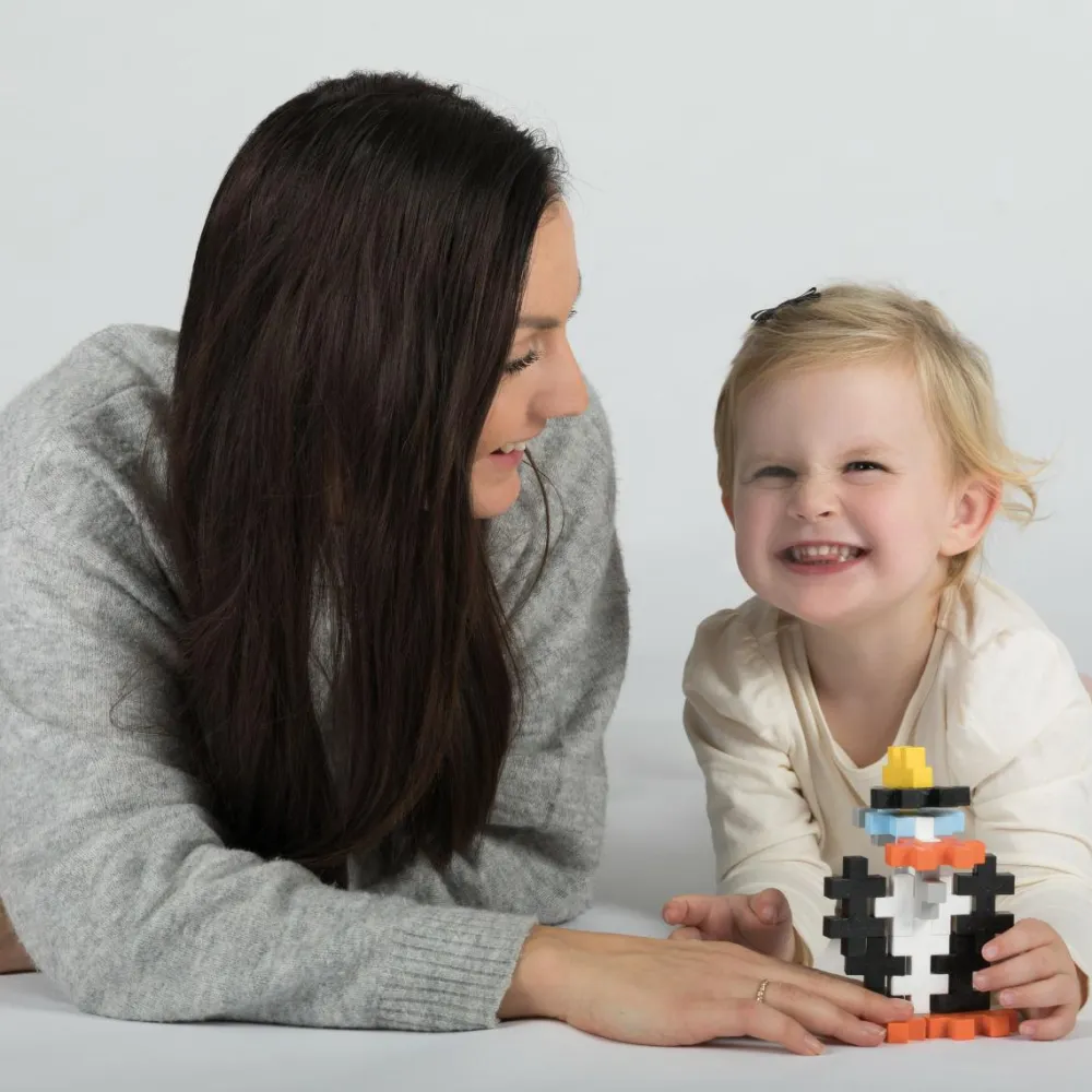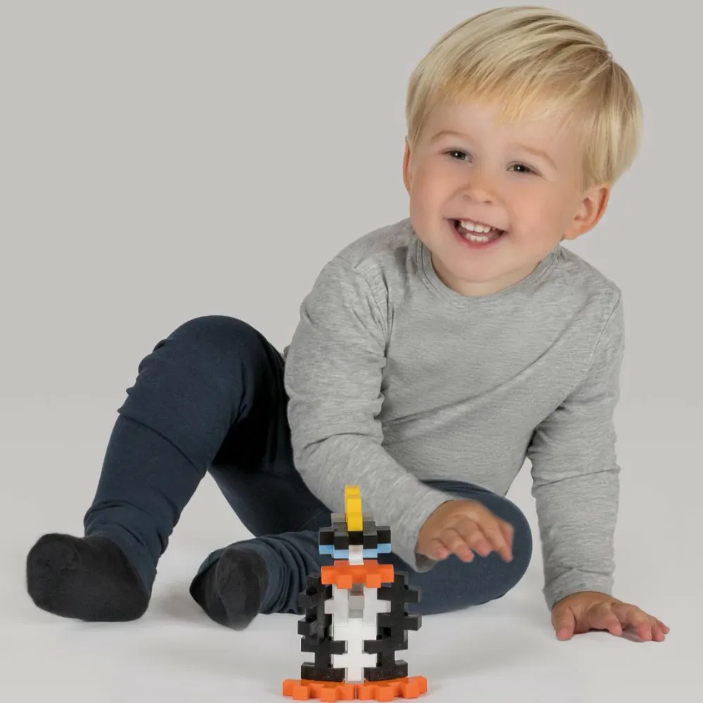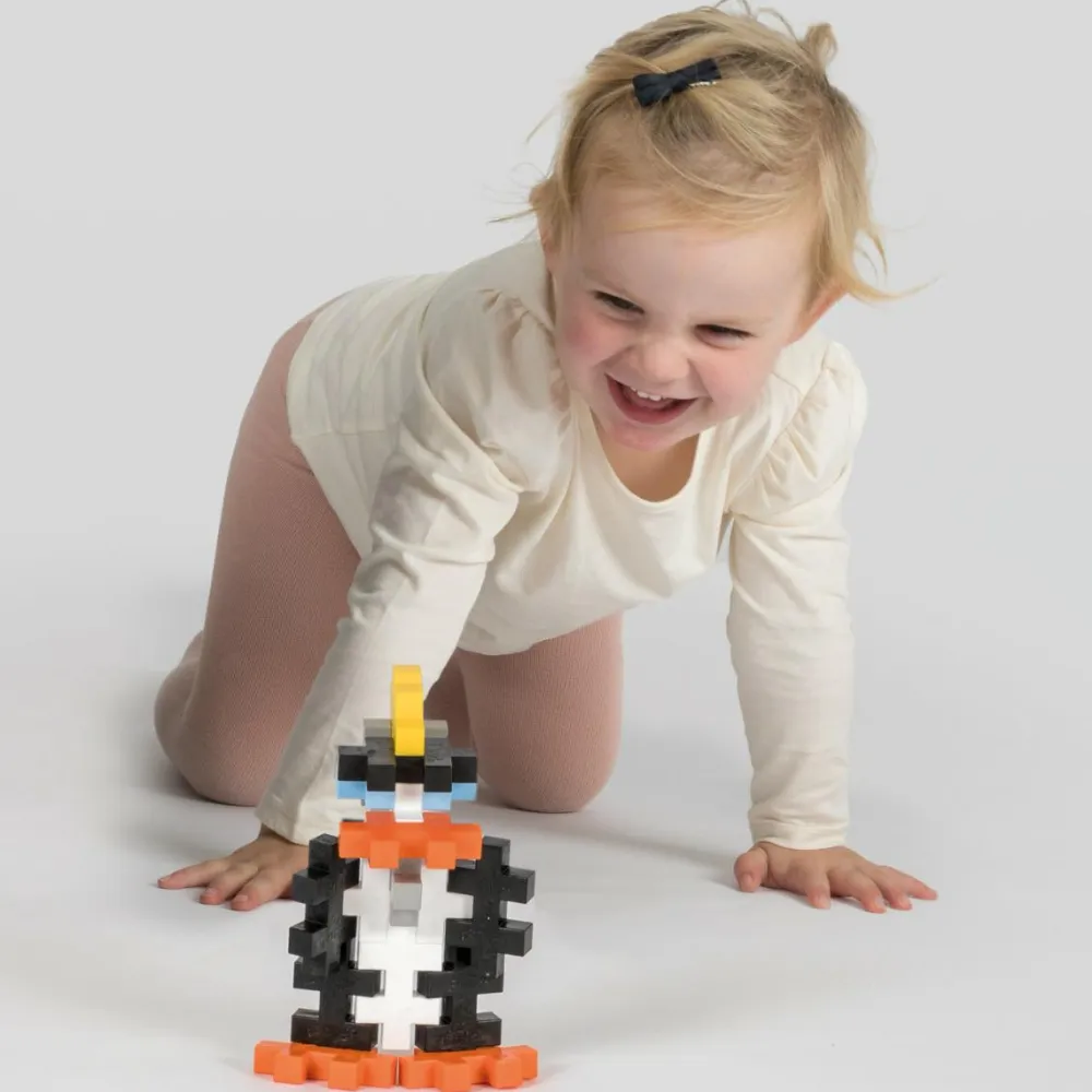 Det er nemmere for dit lille barn at håndtere de store Plus-Plusser. I dette rør er der brikker til at samle en pingvin, men der kan samles en masse andet efter fantasien.