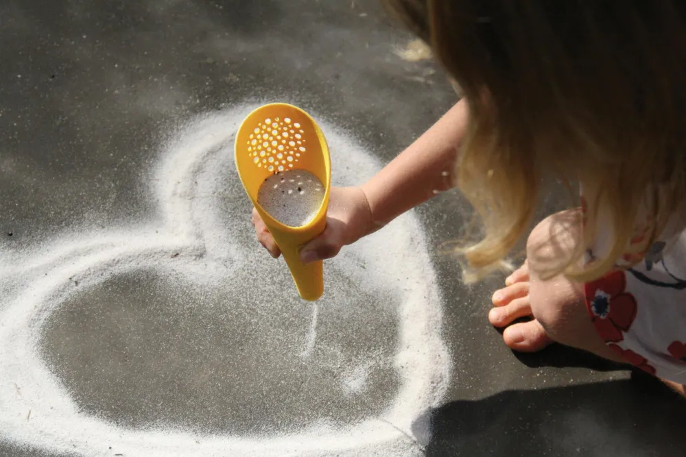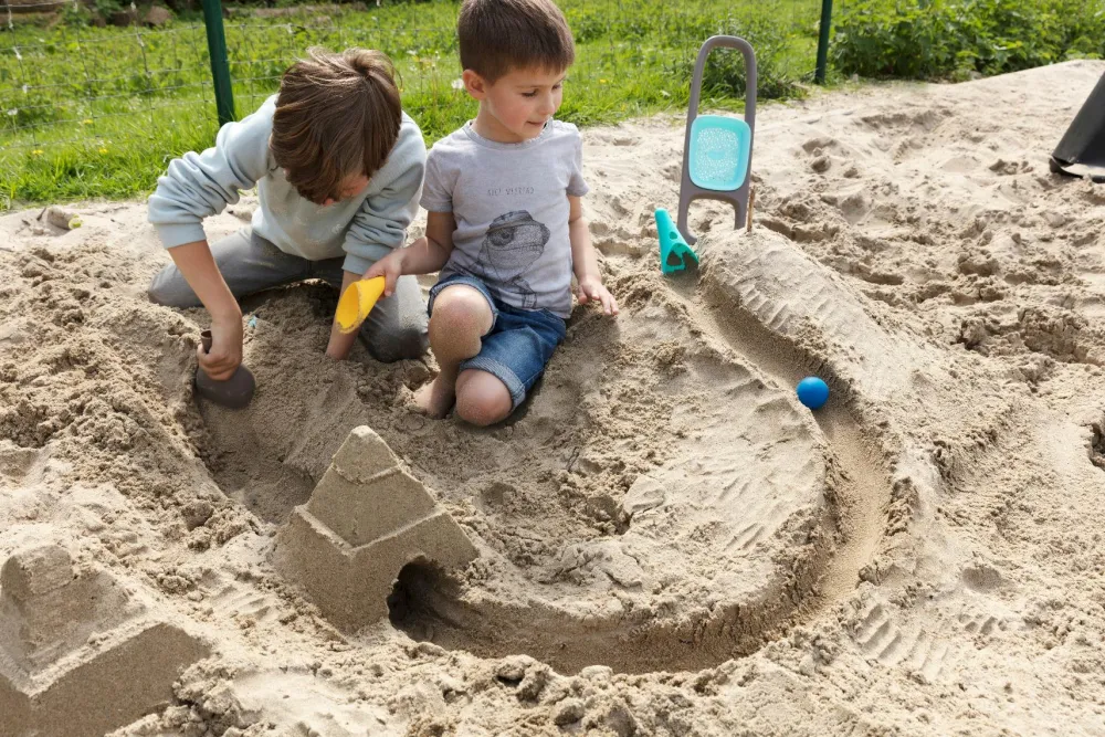 For de fleste unger er sandkassen eller stranden en af de absolut bedste legepladser. Form sandet til imponerende sandslotte, duftende kager eller ruter, hvor legetøjsbiler kan køre rundt i bunkerne.