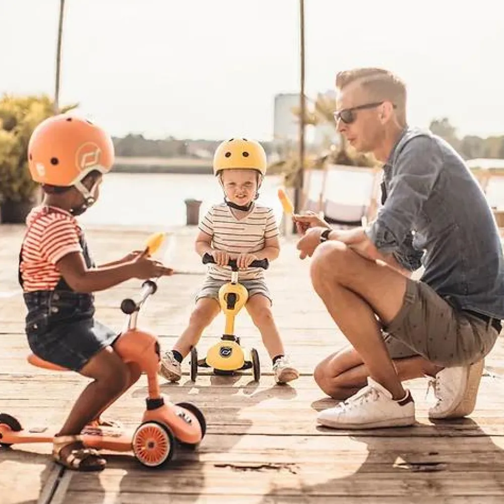 Det helt specielle ved Highwaykick 1 er dog muligheden for at bruge køretøjet BÅDE som løbecykel og som løbehjul – det forlænger dels den brugstid, I kan forvente at få ud af køretøjet, fordi jeres barn kan bruge sin Highwaykick 1 helt fra 1-års alderen og op til ca. 5 år. Samtidig betyder det også, at I ikke skal investere i flere køretøjer, som samtidig også fylder godt op i skuret. Det er den perfekte løsning til småbørnsfamilier!