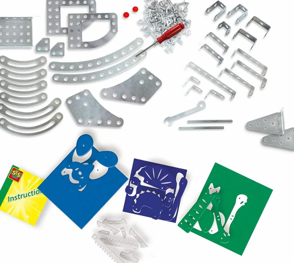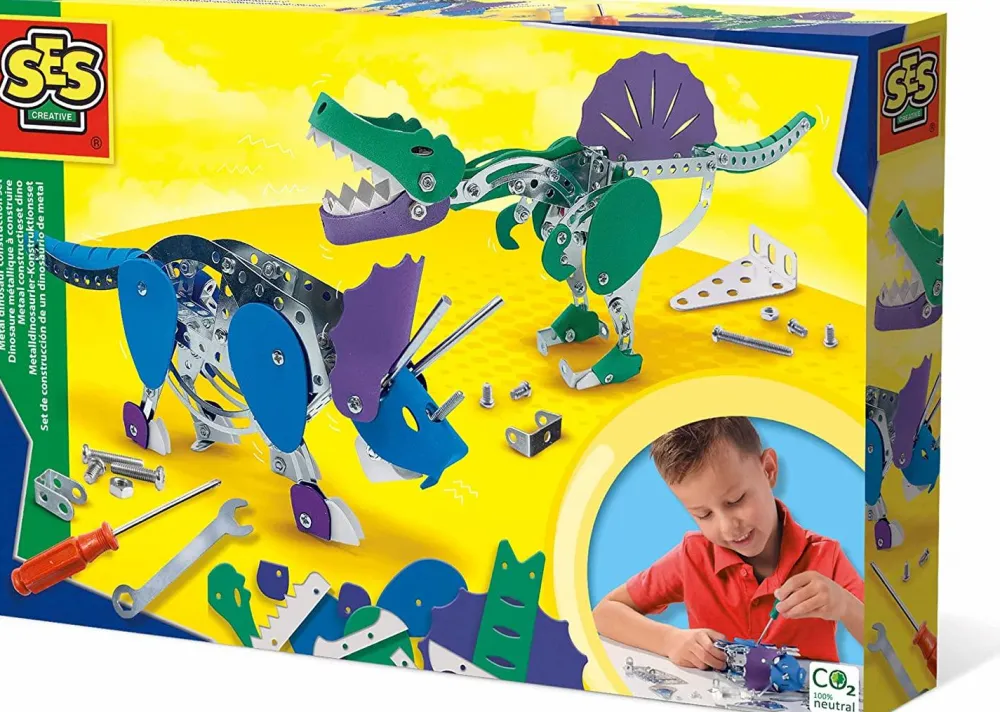 Et flot kit, hvor dit barn ved hjælp den vejledningen kan bygge sig intet mindre end 2 flotte dinoer i metal.