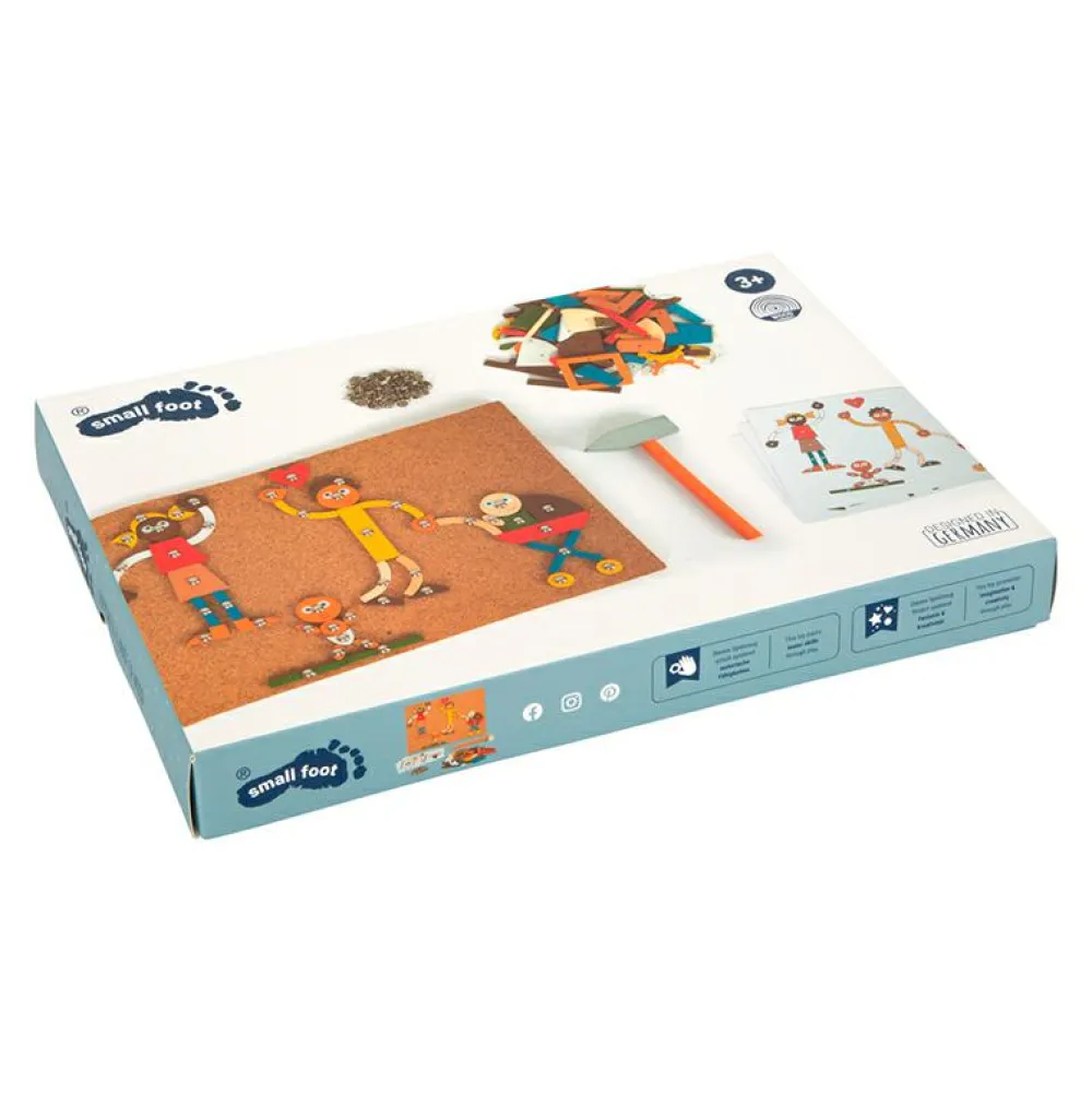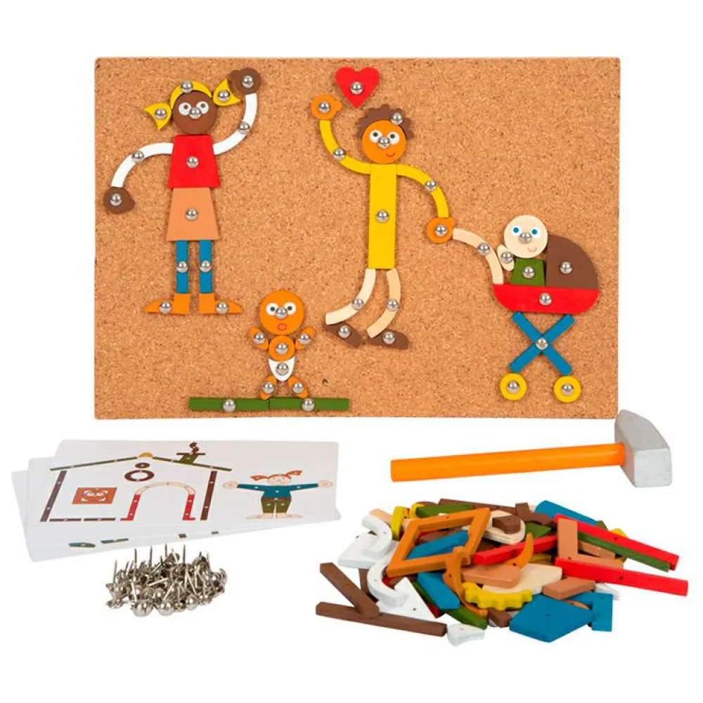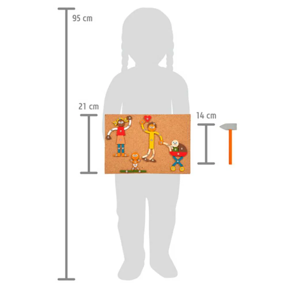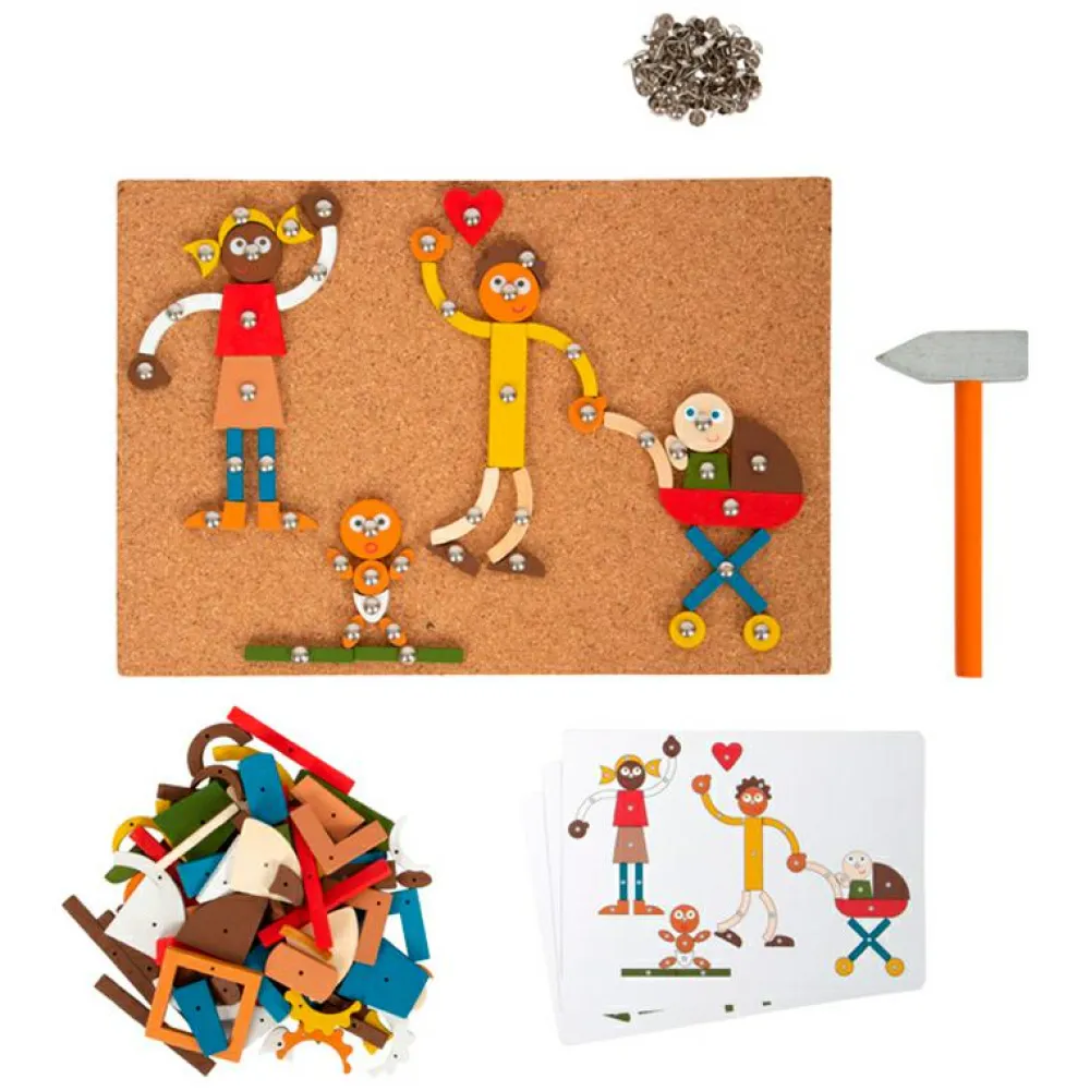 Ved at følge de søde skabeloner kan dit barn hamre sig til fine familieportrætter ved hjælp af mosaikbrikker, hammer, korkplade, søm og fantasi.