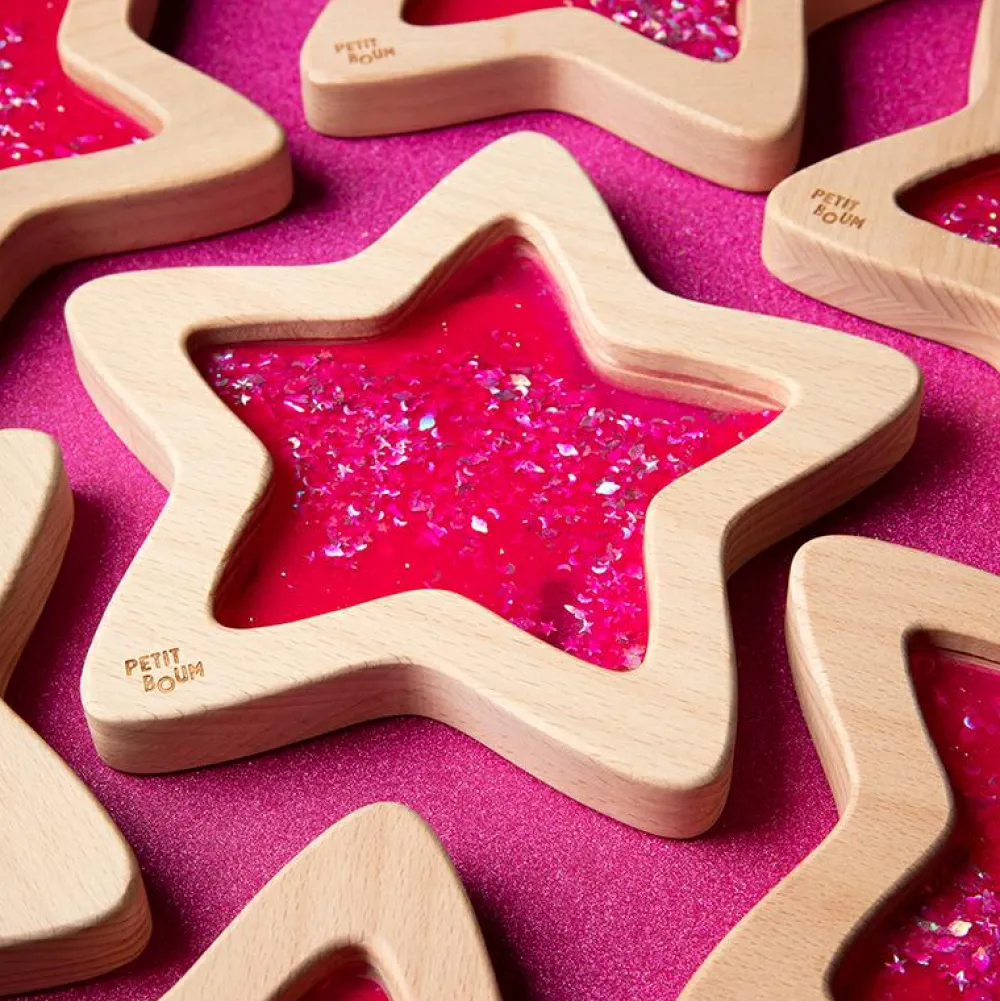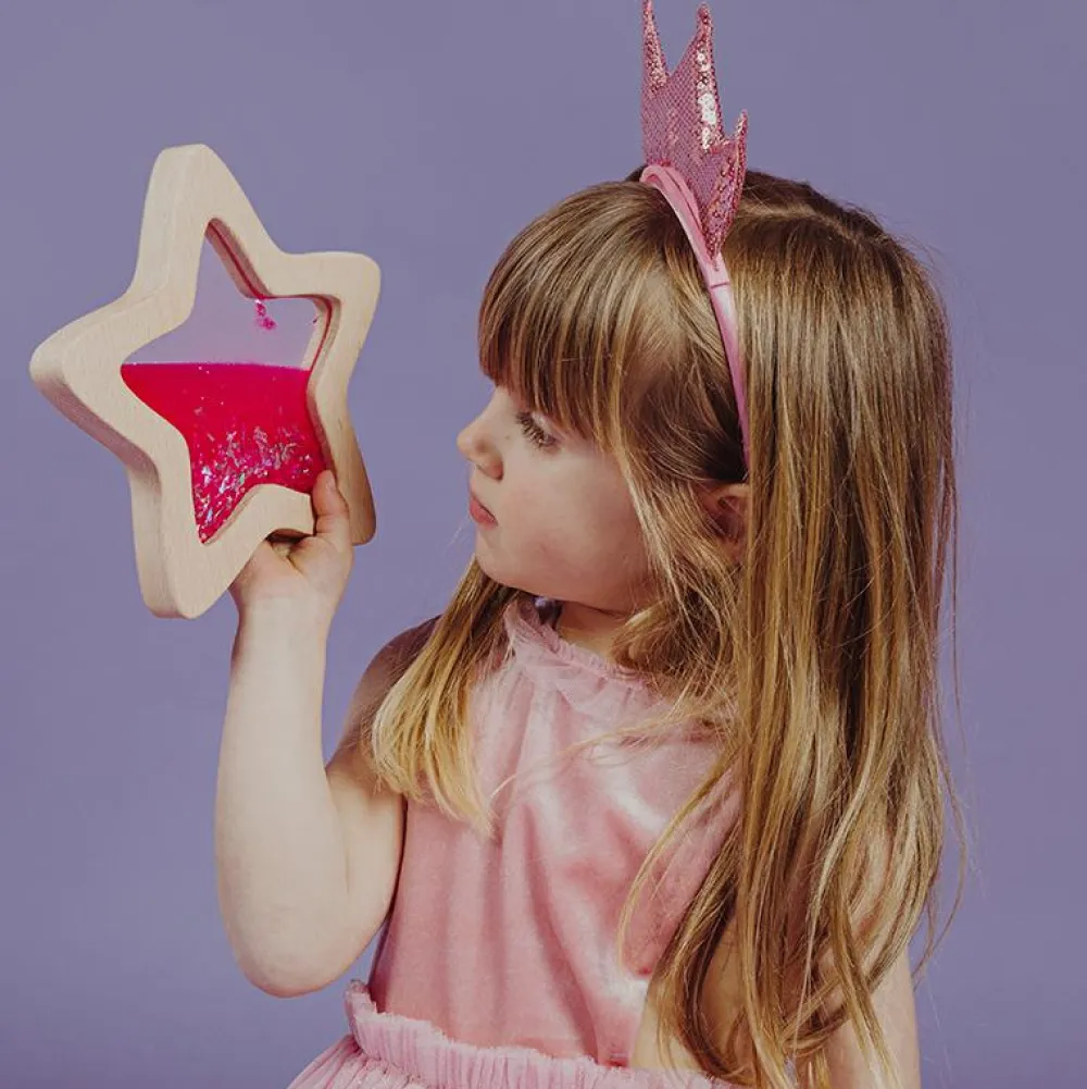 Fin pink stjerne der kan hjælpe dit barn til at falde til ro og fordybe sig i de fine glitrende pigmenter, som kan lyse i mørke, hvis det har suget lys til sig forinden.