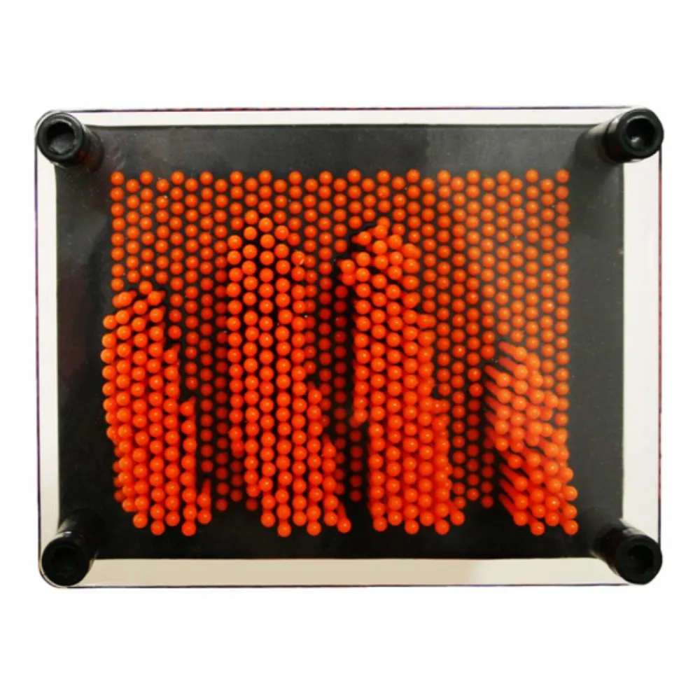 Fascinationen over at trykke vores hænder eller måske ansigtet ind i sømmene og se det hele i 3D, hvis man ikke fik vendt pladen, så alle sømmene faldt tilbage på plads.