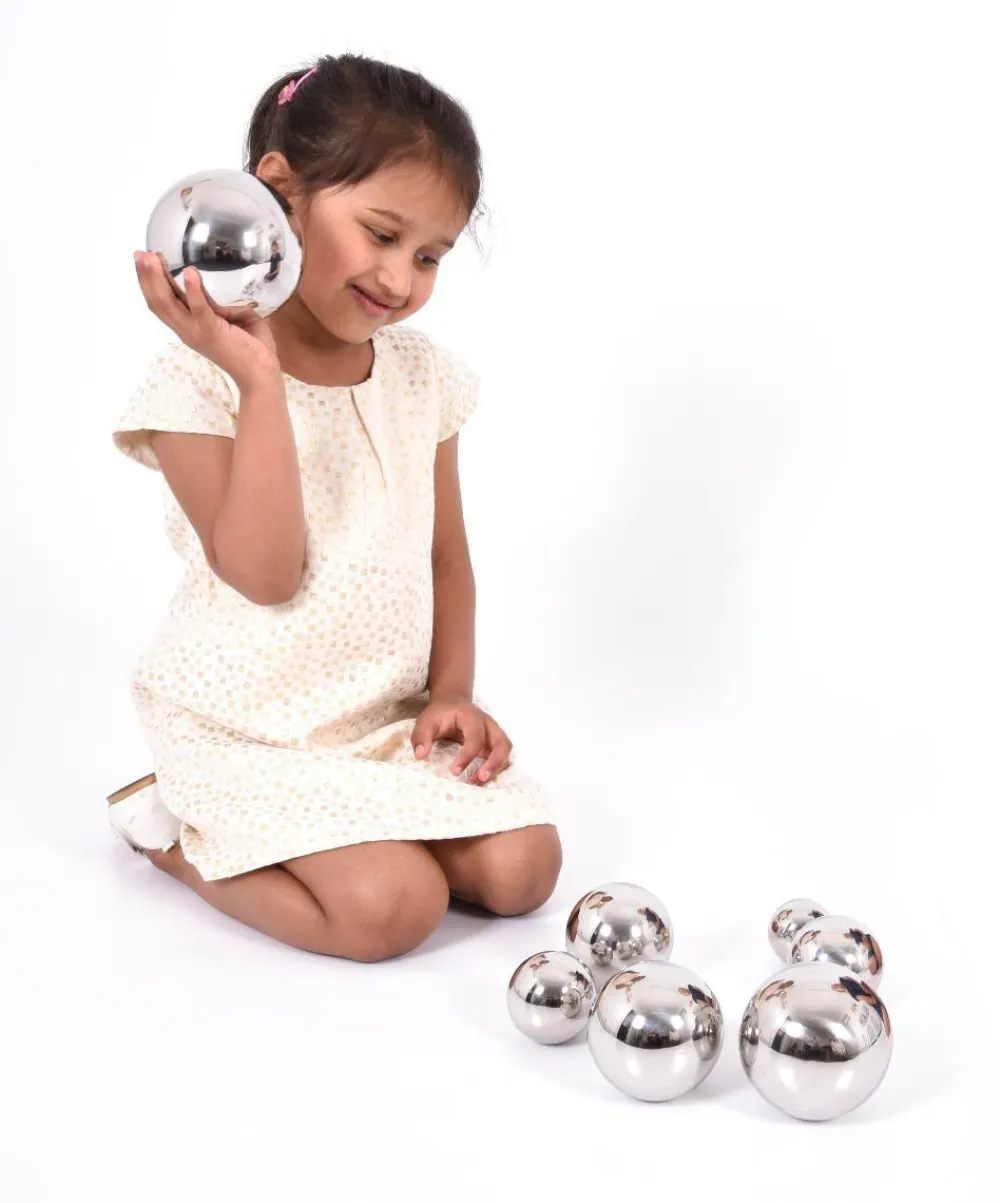 Deres blanke overflade, som barnets ansigt bliver spejlet i på sjove måder, de unikke lyde fra hver enkelt kugle, den næsten svævende trillen over gulvet, vægten, som man forventer er meget højere, end den lethed, kuglerne egentlig har.
