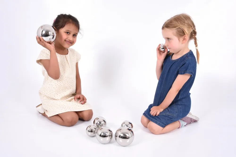 Synssansen bliver også stimuleret, når I kigger i kuglerne og ser jeres ansigter og verden omkring jer blive forvrænget i den konkave overflade og se helt skør ud.