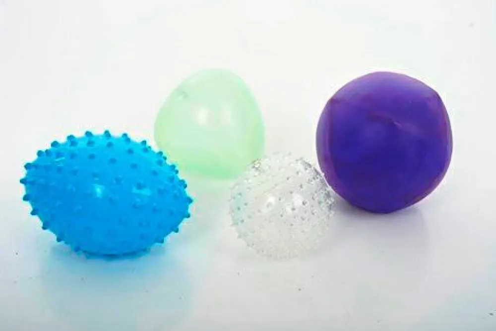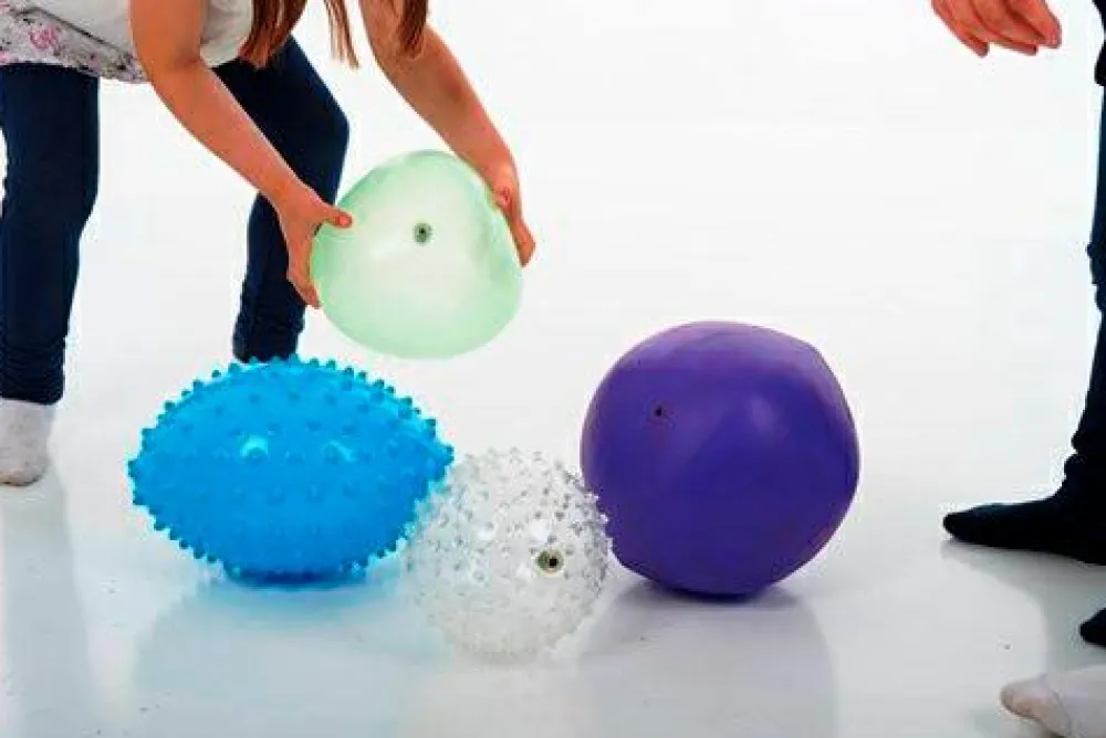 Et sæt med 4 oppustelige bolde (husk at have en boldpumpe) i sjove og anderledes skæve former. Ligeledes har hver bold forskellige overflader og farver.