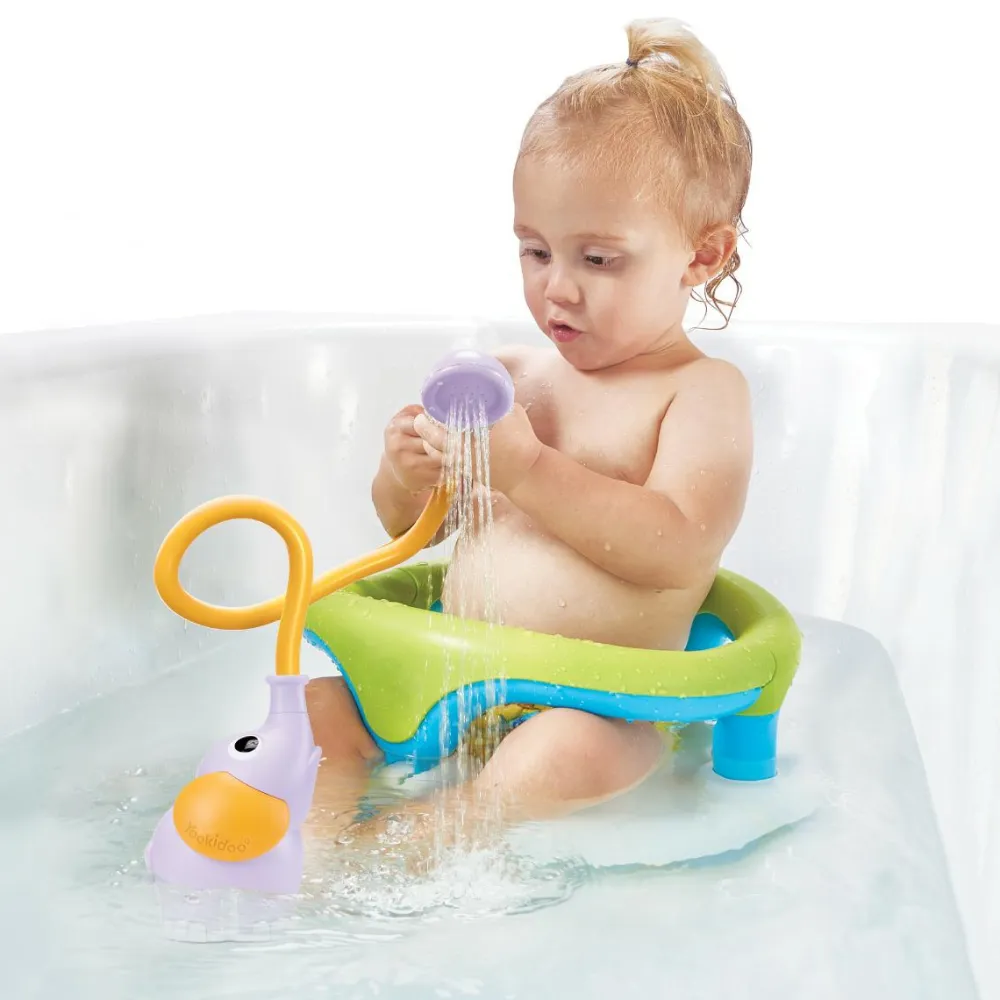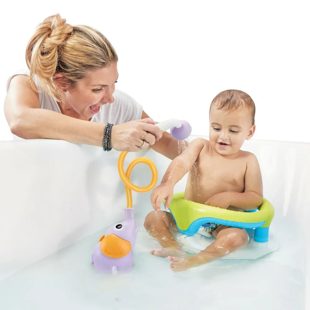 Denne elefant er heldigvis meget lille, og sprøjter kun blidt, når man beder den om det ved at trykke på knappen.